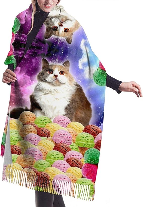 Amazon アイスクリーム 猫 プリンセス レディース マフラー レディースメンズ共用 大判 ストール カシミヤ シンプル ギフト クリスマスプレゼント 196cm 68cm マフラー 通販